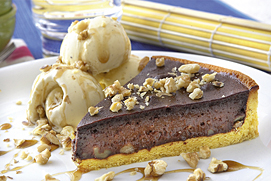 Τάρτα ρευστής σοκολάτας με καρύδι.
